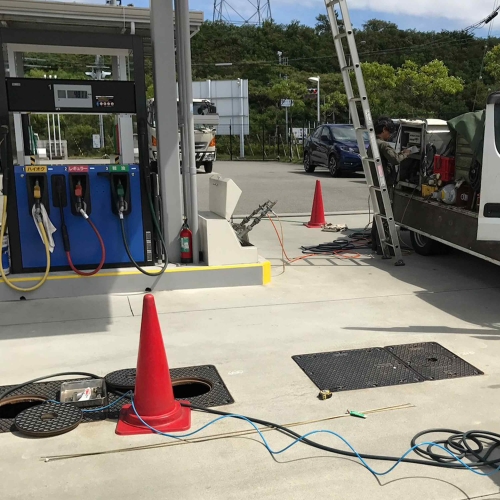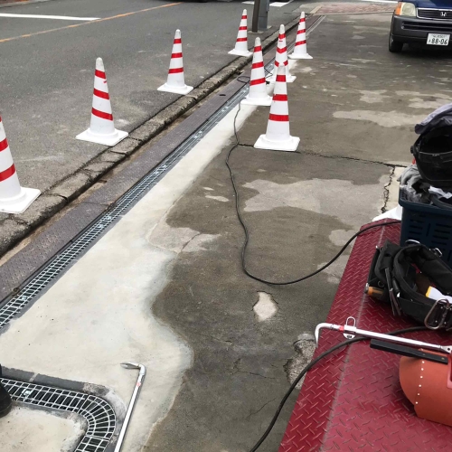 地下タンクの定期漏洩検査 30年以上のベテラン検査員による漏洩検査もお請け致します。 検査も人により判断が必要となりますが、やはり経験と年数で僅かな変化を見過ごさないです。 小規模な土木工事補修作業 写真は、スタンドの周囲側溝の割れを補修した工事です。 大型車両が出入りするので側溝が割れてしまったので補修しました。(^_^)